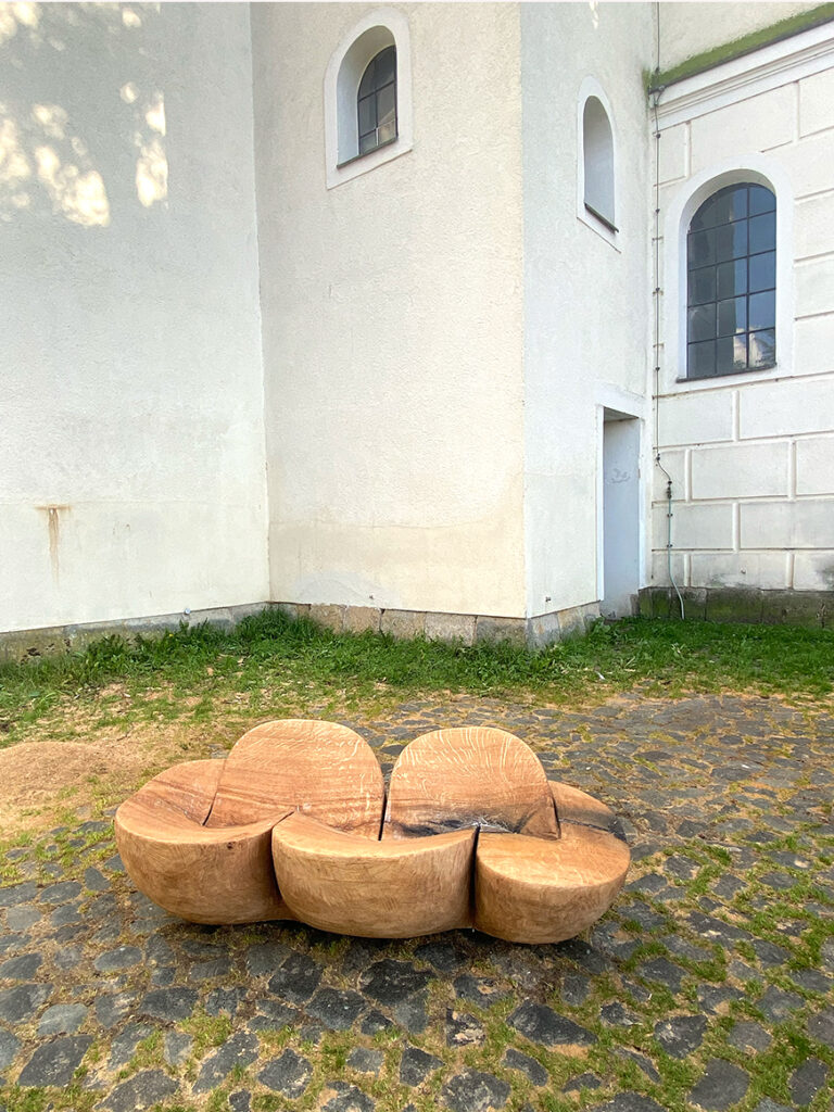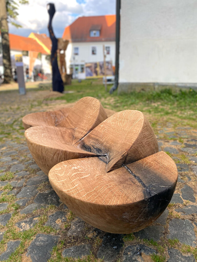 2024, oak and ash wood from Schlosspark Trebnitz, 1 x ca. 140 x 80 x 80 cm, 3 x ca. 50 x 42 x 40 cm